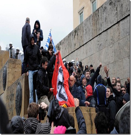 Διαδηλωτές στη Βουλή έκαψαν την Γερμανική σημαία.