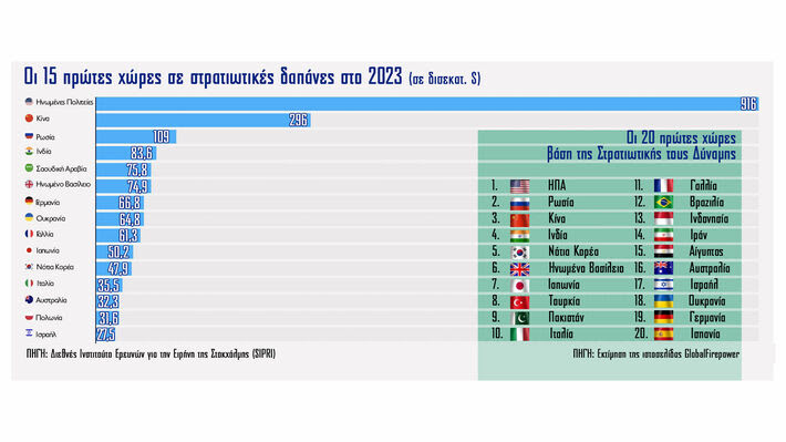 Οι 15 πρώτες χώρες σε στρατιωτικές δαπάνες στο 2023